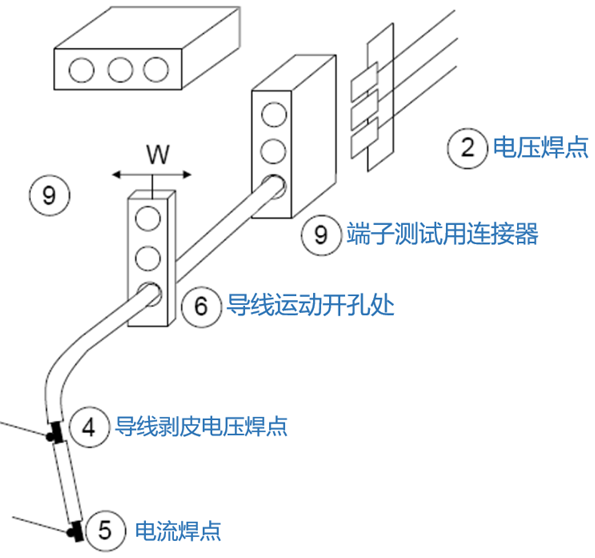 測試目的是測量端子和導線連接位置的電阻。