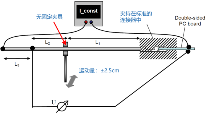 測試裝置的設計必須能在溫度箱內調整,以保證運動循環能在不同的環境下測試。測量線必須能從溫度箱導出。